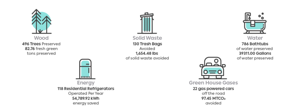 - In 2022, through our partnership with Iron Mountain, our Green Report indicated that we recycled a total of 18.77 metric tons of shredded paper. This is equal to: